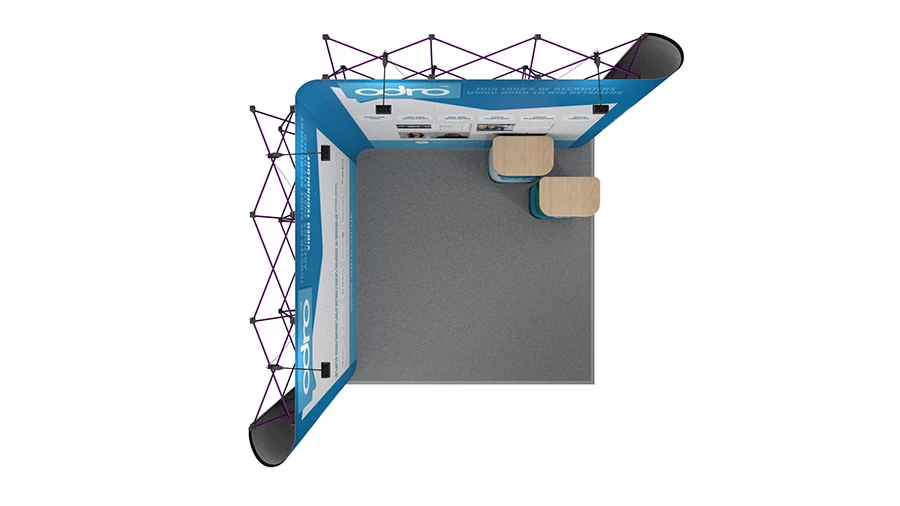 - Creates an exhibition stand with two open sides giving plenty of space for visitors