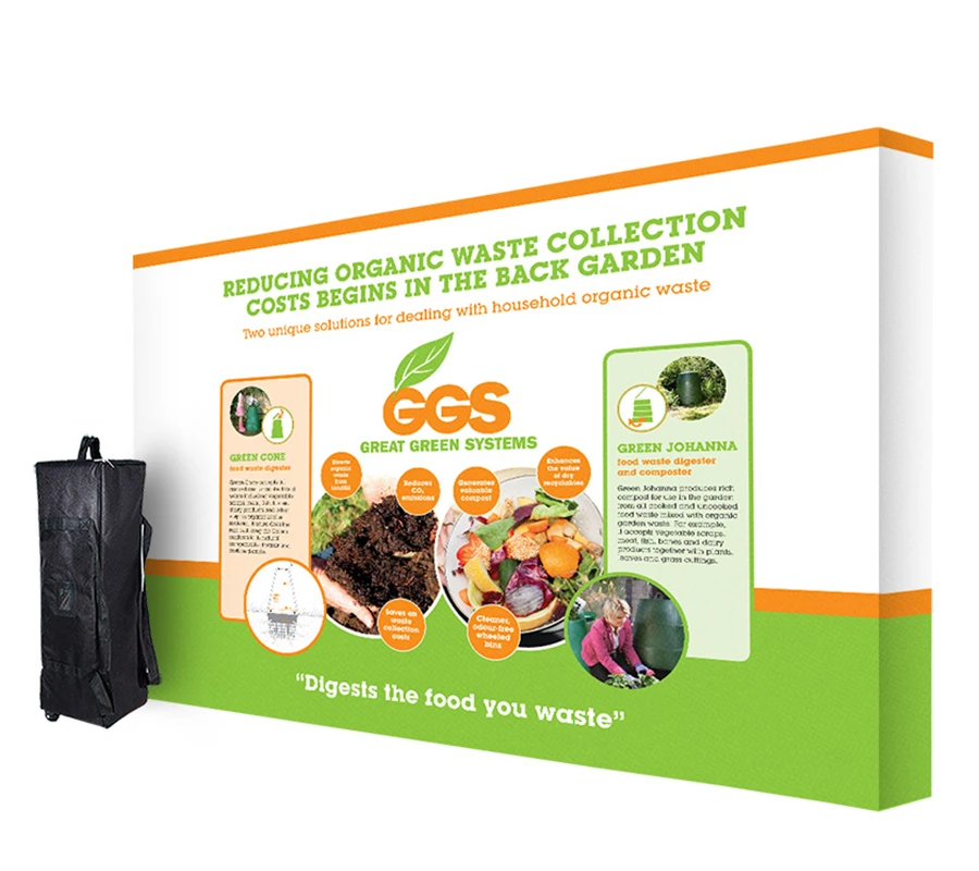 Graphics are printed onto high-quality 220gsm display polyester fabric with a satin sheen finish.