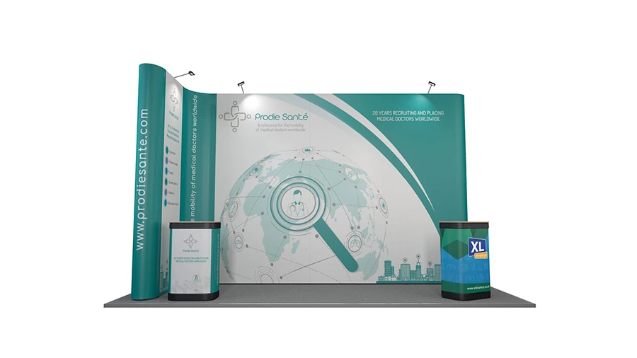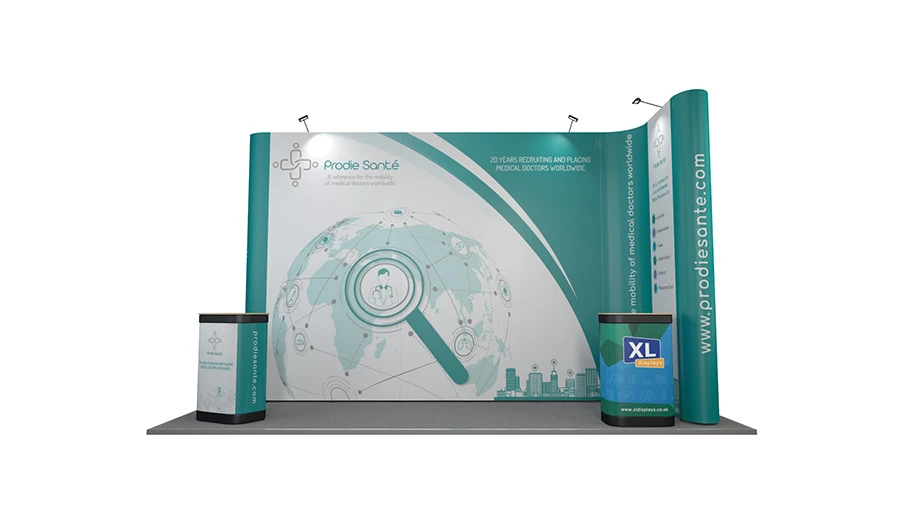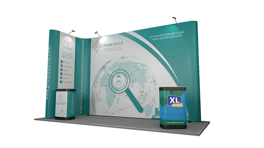 - L-shaped 5m x 2m pop exhibition stand