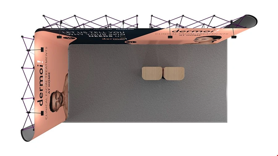 - Pop ups are linked at 90° to form a corner exhibition stand with two opens sides