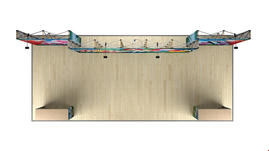 - Includes two 3×2 straight Hop Up fabric pop ups and one 3×5 straight Hop Up fabric backwall