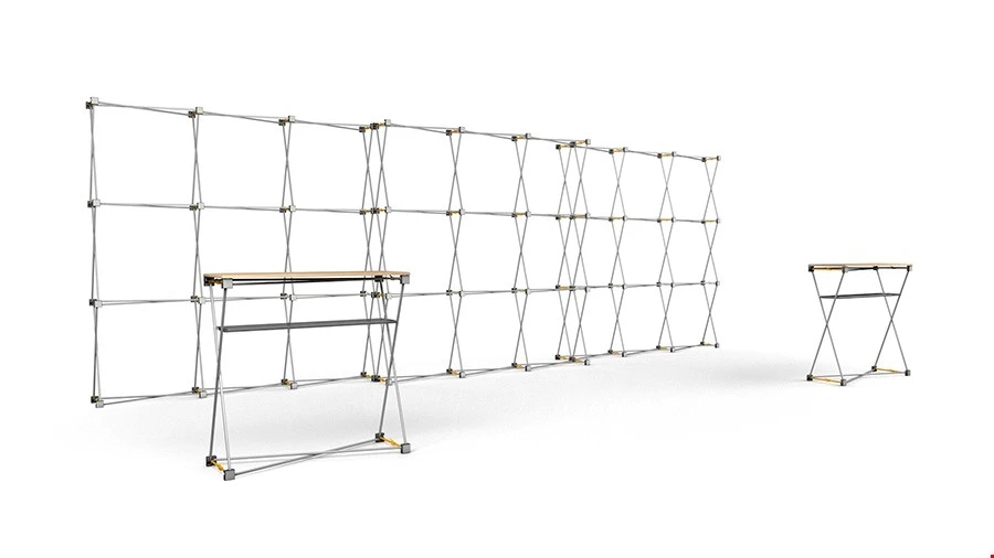 Hop Up stretch fabric displays utilise a classic lightweight scissor-lattice aluminium frame. The printed graphics come readily attached to the frame using ultra-strong Velcro, meaning all you need to do to assemble this modular exhibition stand is extend the hardware and secure the locking arms into place; it really is that easy.
