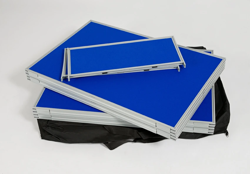 PVC folding panel display board kits are lightweight and easy to assemble and transport. This folding display board system is made with a strong but lightweight PVC frame and comes with 8 upholstered fabric panels, 2 header panels and a carry bag giving a display area of over 4m2.
