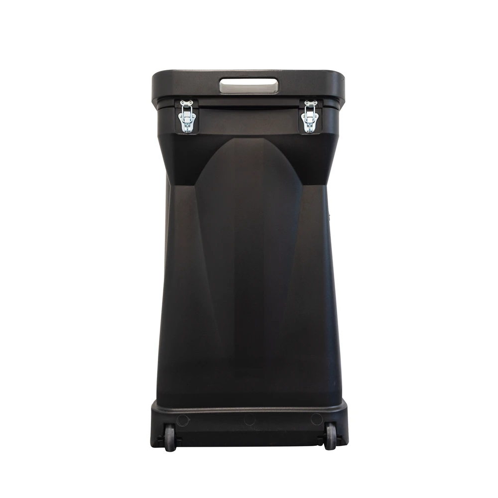 The AC333 Compact Transport Case stands at 970mm high and 550mm wide and is made from a black MPDE plastic making it strong and durable. Suitable for storing and transporting exhibition materials and printed graphics, the portable case features wheels and carry handles and a removable lid for easy access. The top can be secured in place using a padlock to provide additional security for your belongings.Ā