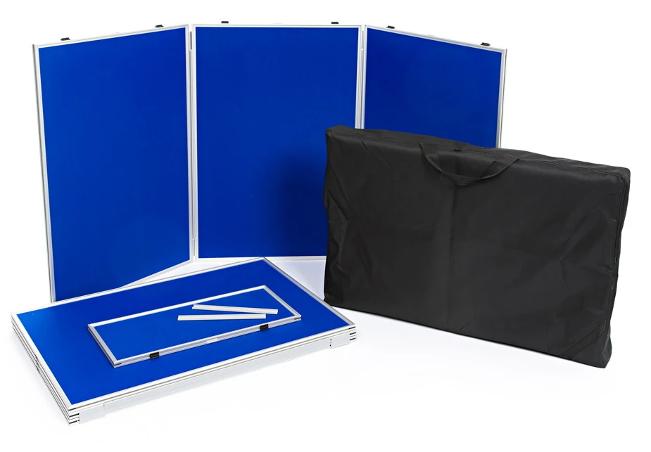 This portable display board comes with a carry bag for storage and transportation.