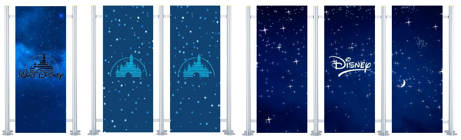 Each graphic panel is 750mm wide and 1990mm high. Graphics are printed in full colour to photo quality standard. Panels are laminated for tear, crease and scratch resistance.
