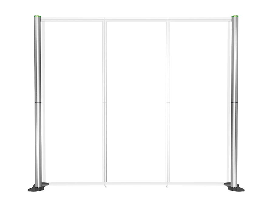 Centro 3 is a modular display system consisting of 1, 2 or 3 graphic display panels. Each 2m high graphic panel is separated by a vertical post creating a unique looking exhibition stand.