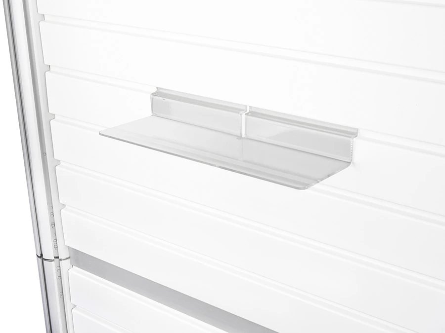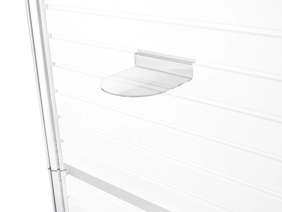 Each shelf will hook easily into the grooves on a Centro slatwall display and will hold a variety of lightweight products. Shelves can be fixed anywhere along the grooves in the slat wall panels so you can create a display which works best for your products.