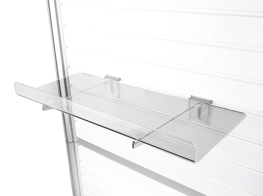 Made from clear acrylic, the product shelf is available in three styles – curved, flat and product shelf with brackets.