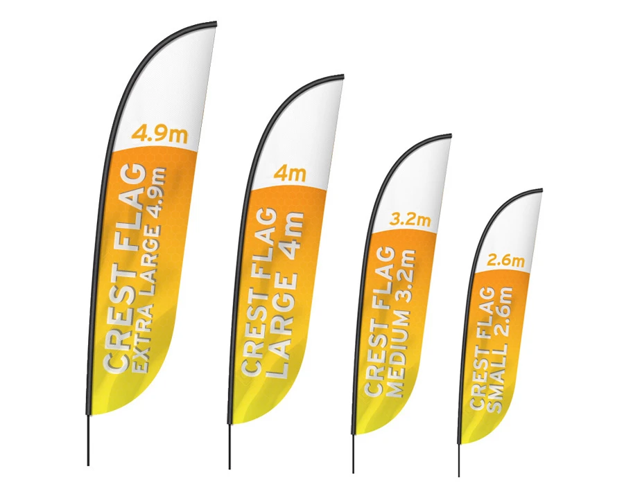 Crest flag banners provide can be used in a variety of different applications and provide height and visibility to your marketing messages.