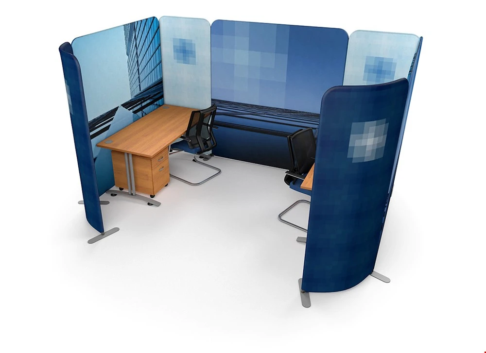 Included in this office partition kit is seven individual office dividers, each one is covered with a custom printed fabric graphic that is washable at 30° allowing you to maintain a clean and hygienic office partition screen.