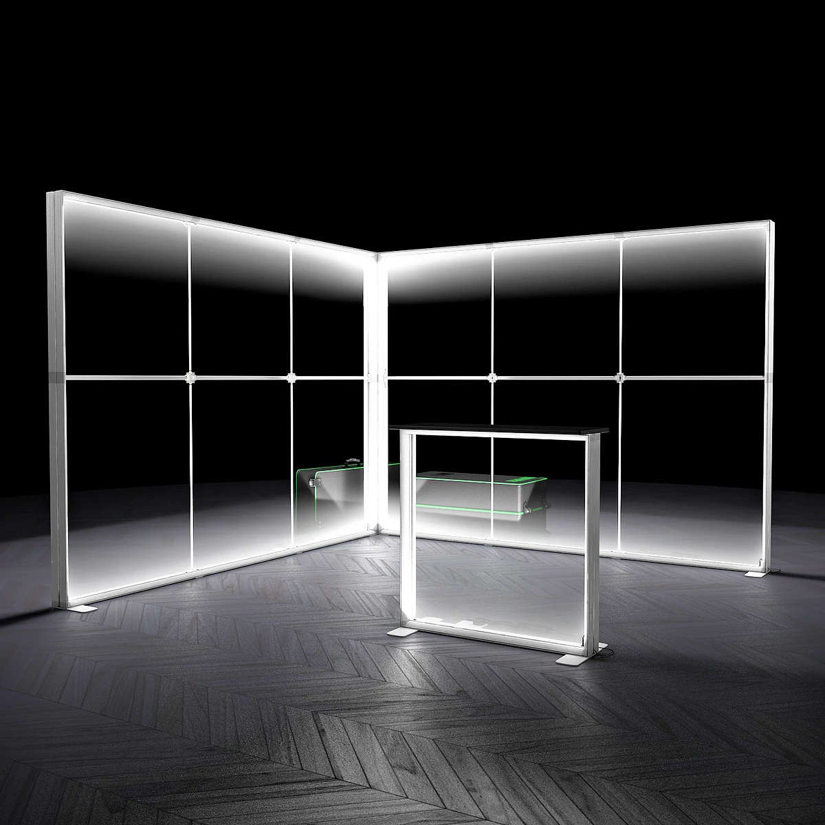 L-Shaped LED Exhibition Stands 3m x 3m