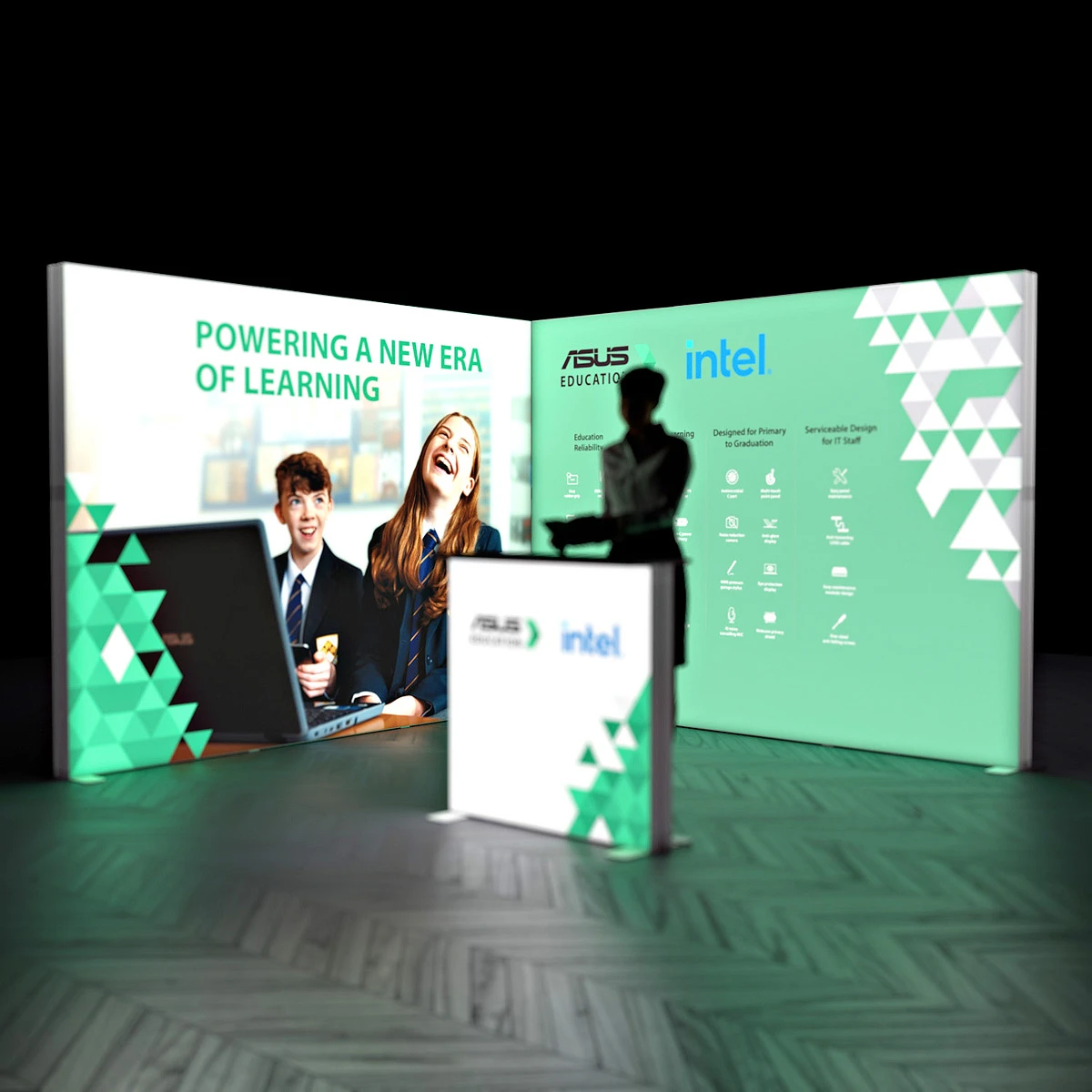 - 3m x 3m L-shaped lightboxes for exhibition