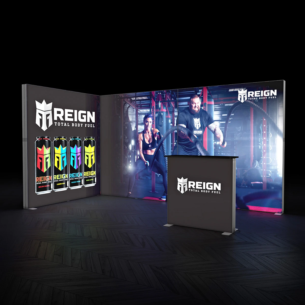 Included in this TFS exhibition stand are three 2m (w) x 2.25m (h) fabric lightboxes with linking accessories and an optional LED Pop Up Counter. Modular by design, you can use each light panel as a free-standing, standalone light box, or linked to form a custom LED light wall or L-Shaped display stand.
