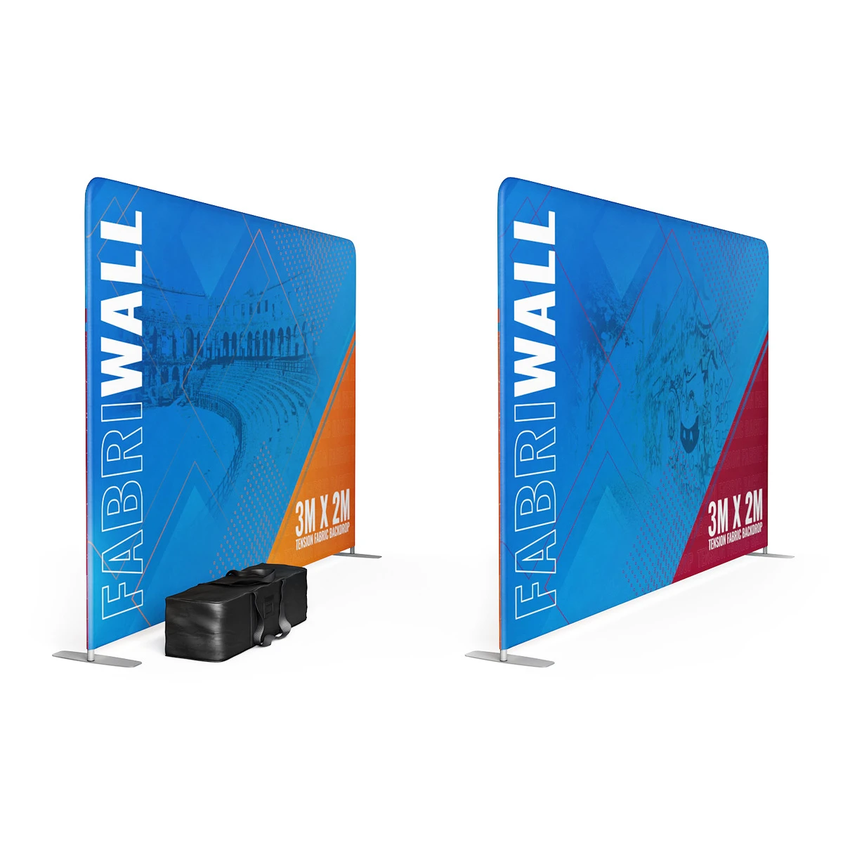 The FABRIWALL® 3m straight tension fabric display stand is a portable exhibition backdrop standing at 2 metres in height. Perfect not only as an exhibition stand backwall but also as a portable retail display or point of sale marketing solution if you need to adhere to a height restriction or want a shorter height display at your promotional event.