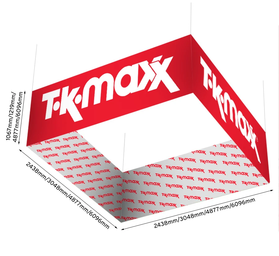 The Formulate square high-level branding is a simple yet effective promotional fabric display that is perfect for suspending from the ceiling above your exhibition stand.