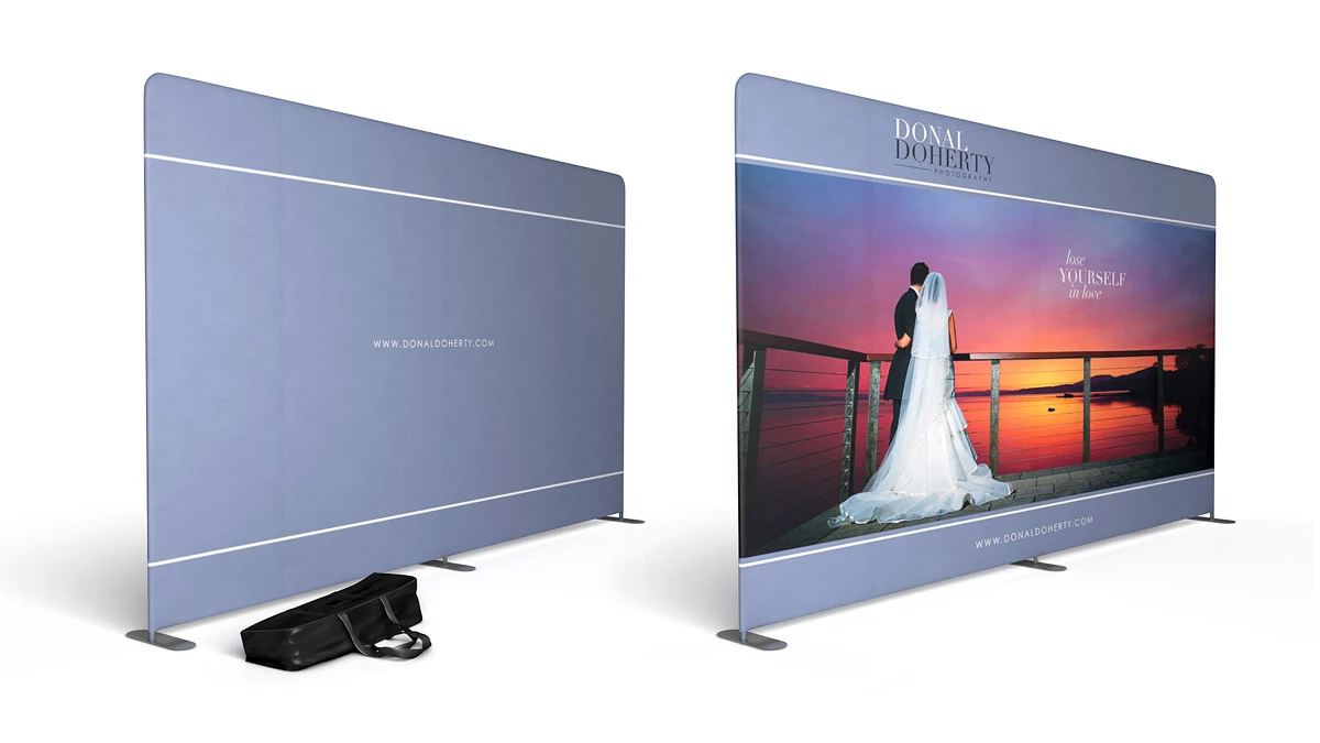 Once the aluminium frame has been assembled, the one-piece fabric sock slides over the frame to create a tensioned fabric exhibition with seamless graphics.