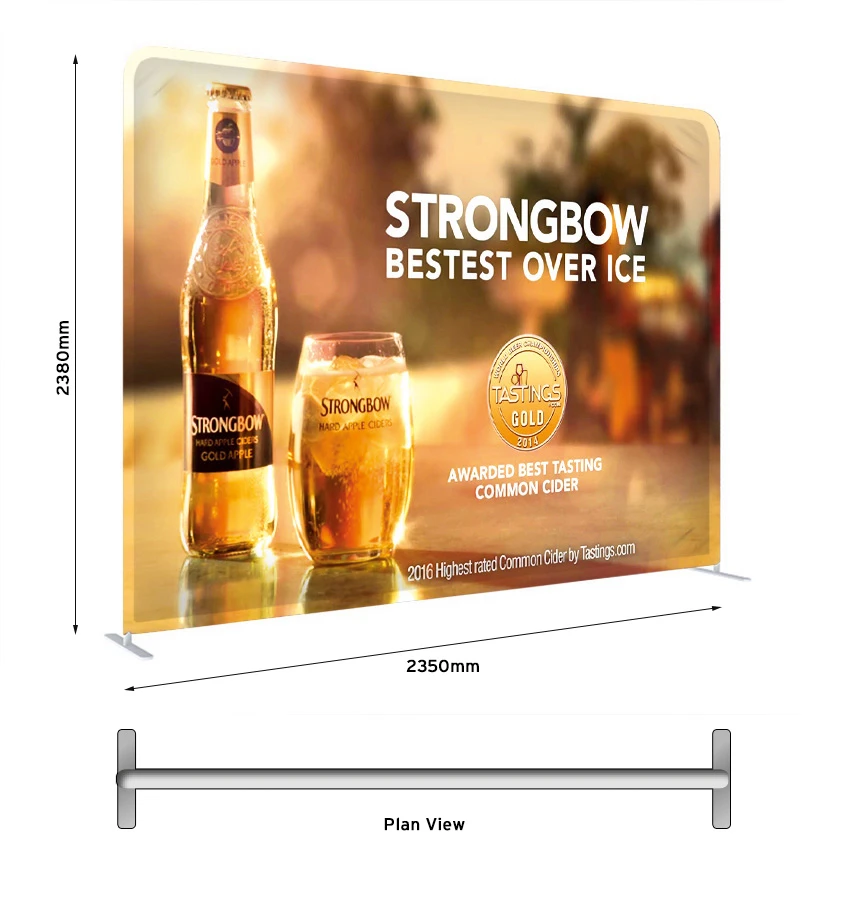 - Freestanding printed fabric display 2400mm wide (equivalent to 8ft)