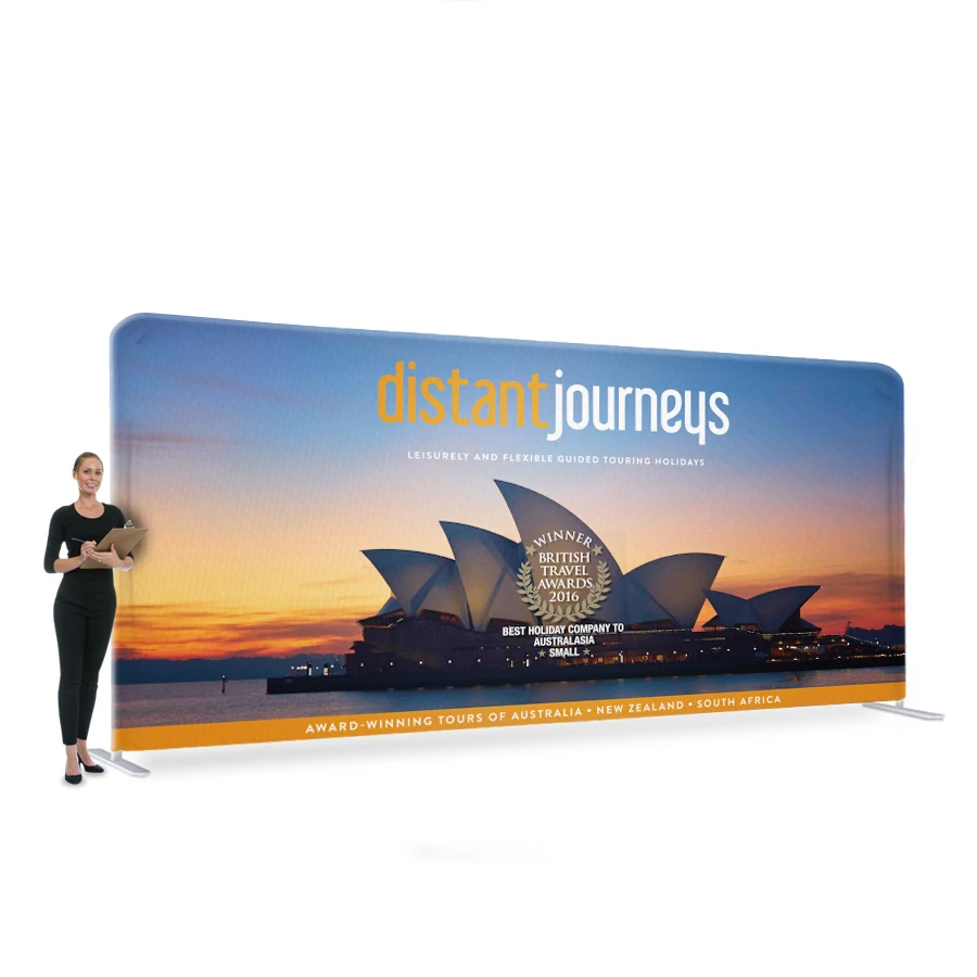 - Large 6m wide freestanding fabric display (equivalent to 20ft)