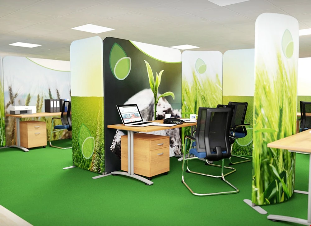 Each individual office divider is covered with a custom printed fabric graphic that is washable at 30° allowing you to maintain a clean and hygienic office partition screen for everyday use.Â
