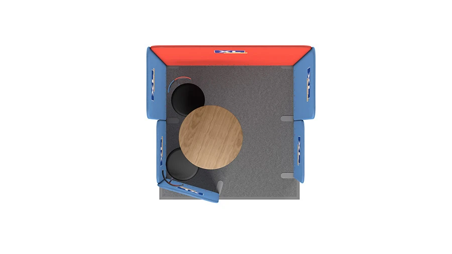 It takes one person less than 10 minutes to self-assemble this fabric meeting area without the need for tools or contractors.