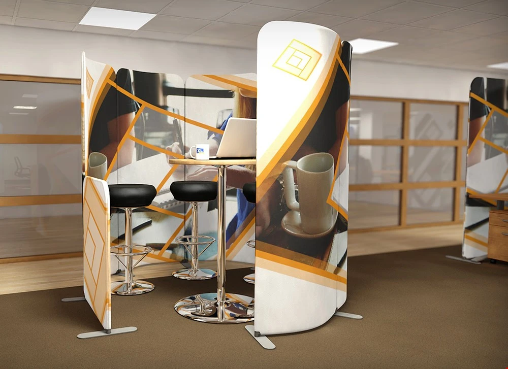 Individual office screens comes with double-sided graphics as standard so your company branding can be seen from all angles. Single-sided artwork will be printed in plain white on the reverse.Ā