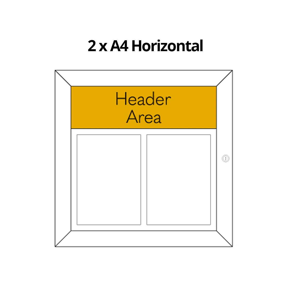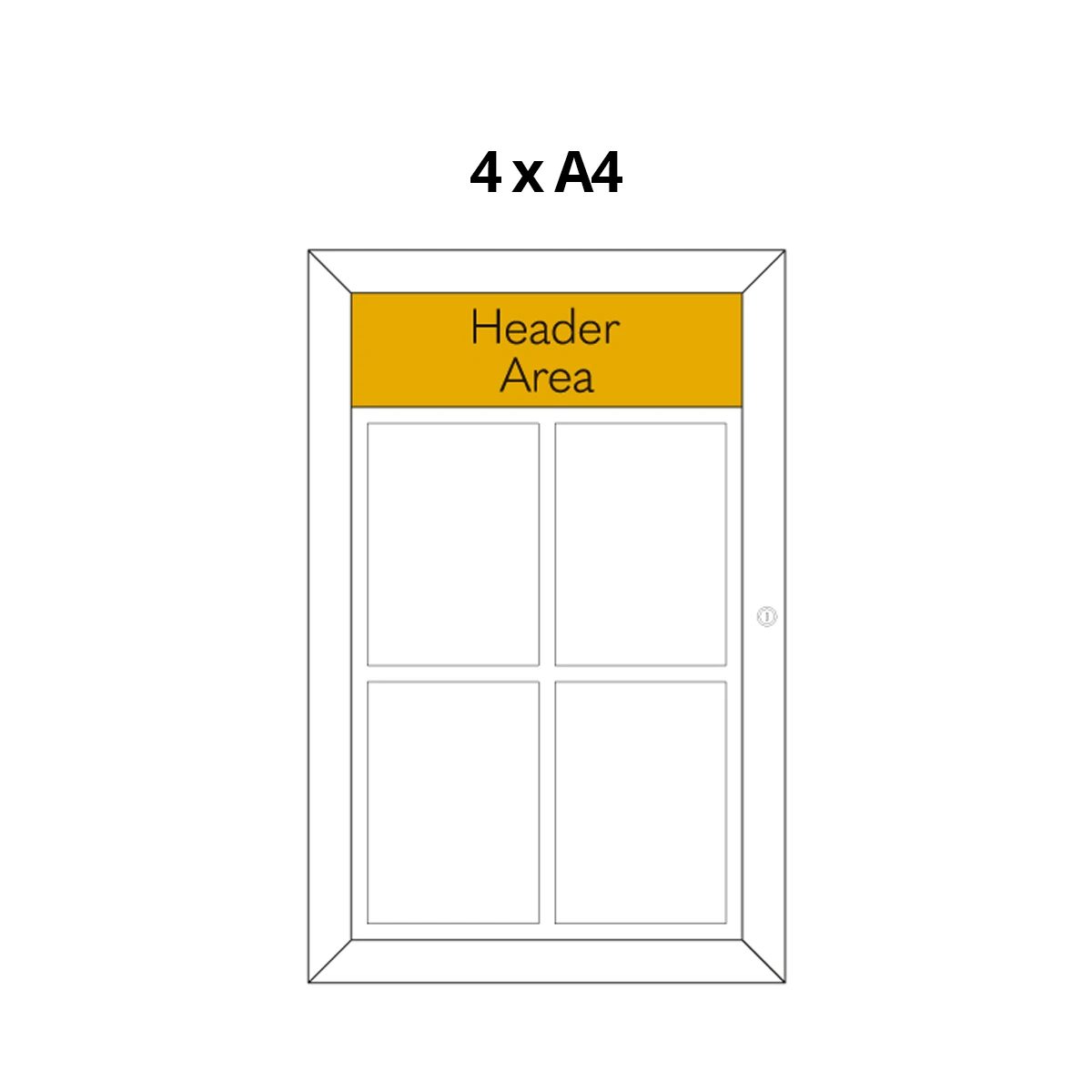 The LED menu display case features a header panel located at the top of the frame for showcasing your branding or logo. Choose to include a printed vinyl logo when ordering. Please note this does not include A4 printed posters but they are available to buy separately here.