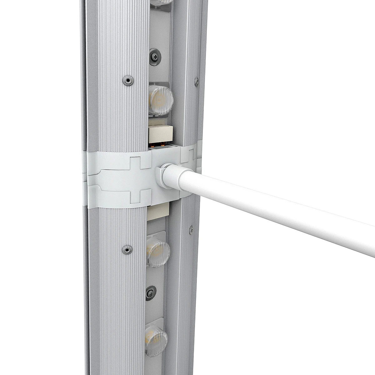 The PIZAZZ® Pop Up LED Lightbox has integrated magnets within the uprights of the aluminium frame, allowing you to seamlessly link multiple Lightbox tension fabric systems together. Create Light boxes for exhibition stands by adding additional PIZAZZ® kits together in a straight line for a modular light box display.