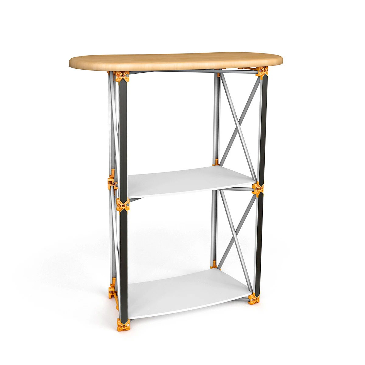 The counter features two interior shelves which have a load-bearing weight of approximately 3kgs each when evenly spread. The countertop itself has a load-bearing weight of approximately 25kgs when evenly spread.