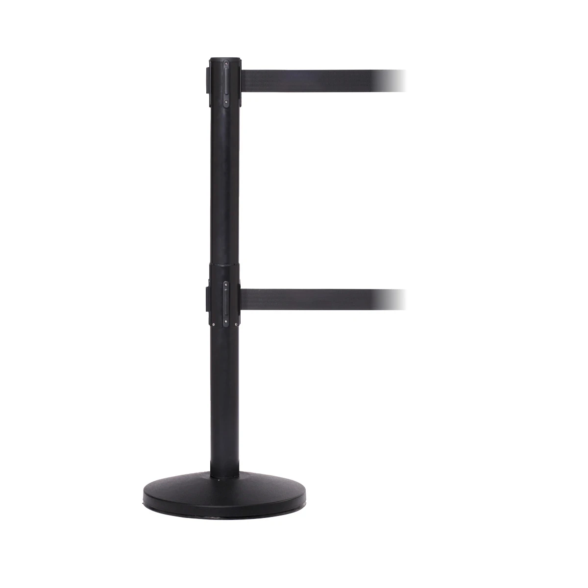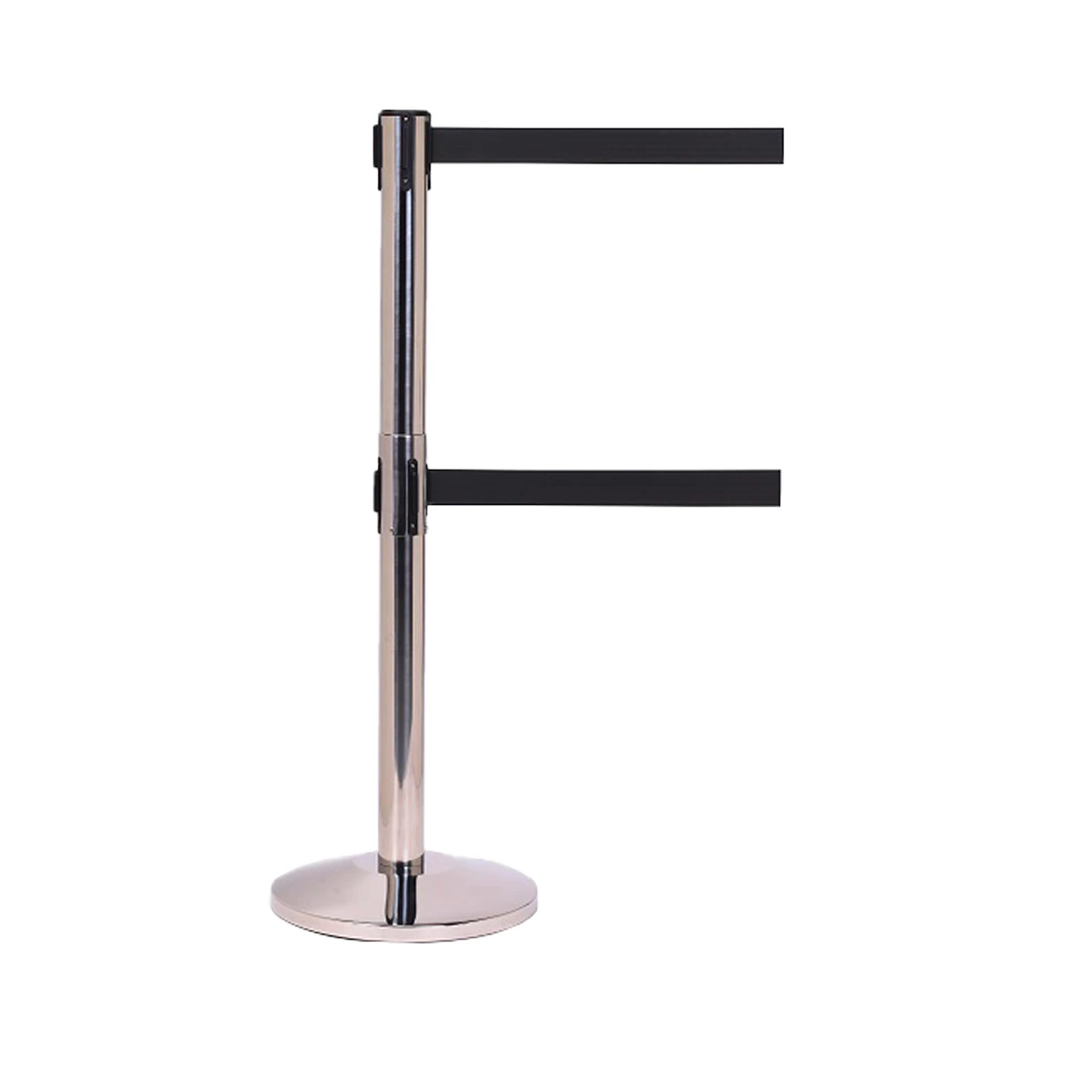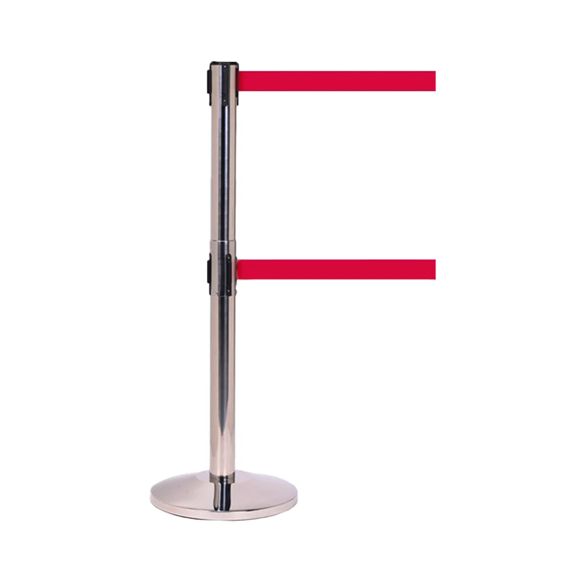 - Double retractable belt barriers to prevent ducking under