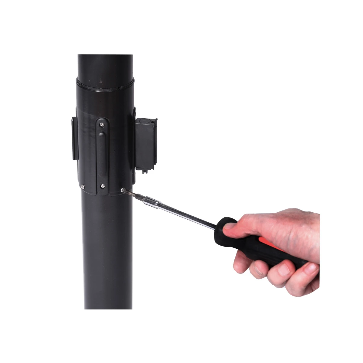 The heavy gauge steel posts are available in 3 post colours, Black, Polished Stainless Steel or Satin Stainless Steel and have cast iron low profile base which offer weight and support with a sleek finish.Ā