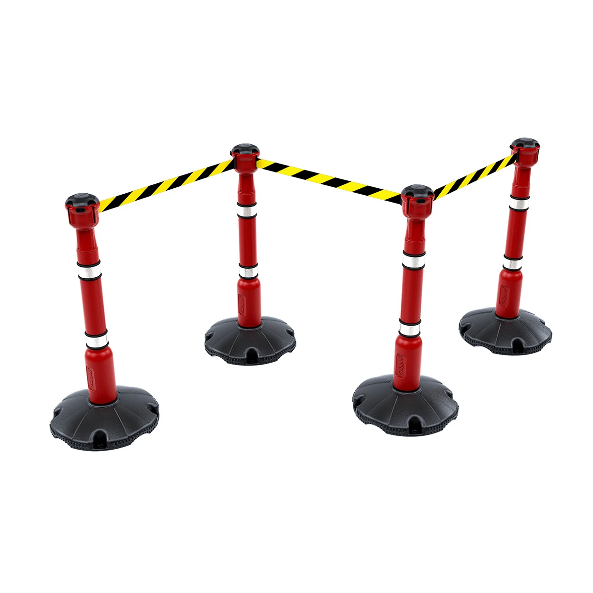 The system is designed to be eye-catching, making it ideal for use as a safety barrier to designate safe spaces, warn of dangerous areas and mark off repair zones at construction sites, factories, warehouses and roadsides. It can also be used to designate social distancing measures or implement crowd control queue lines at events.