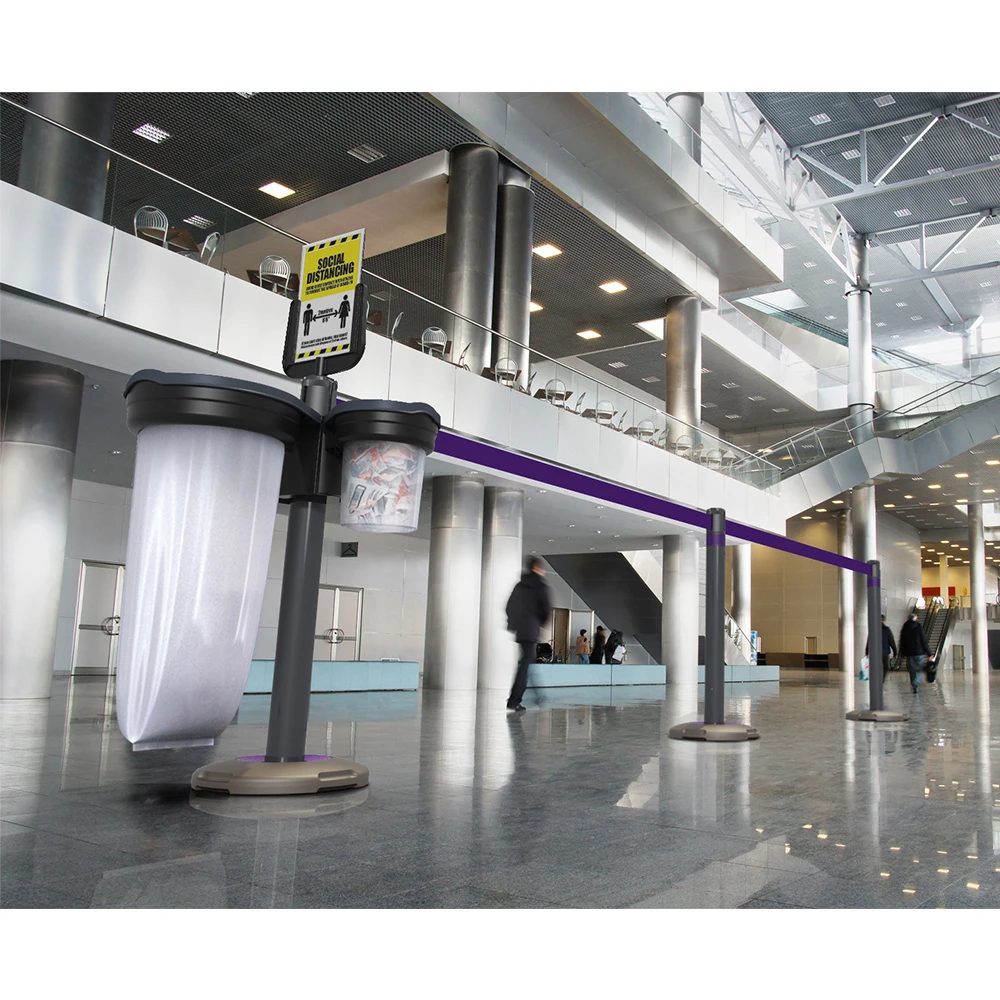 The SkipperQ system includes a range of different accessories including waste bins, sanitising stations and poster frames which can be clipped on to the post using specially designed brackets.
