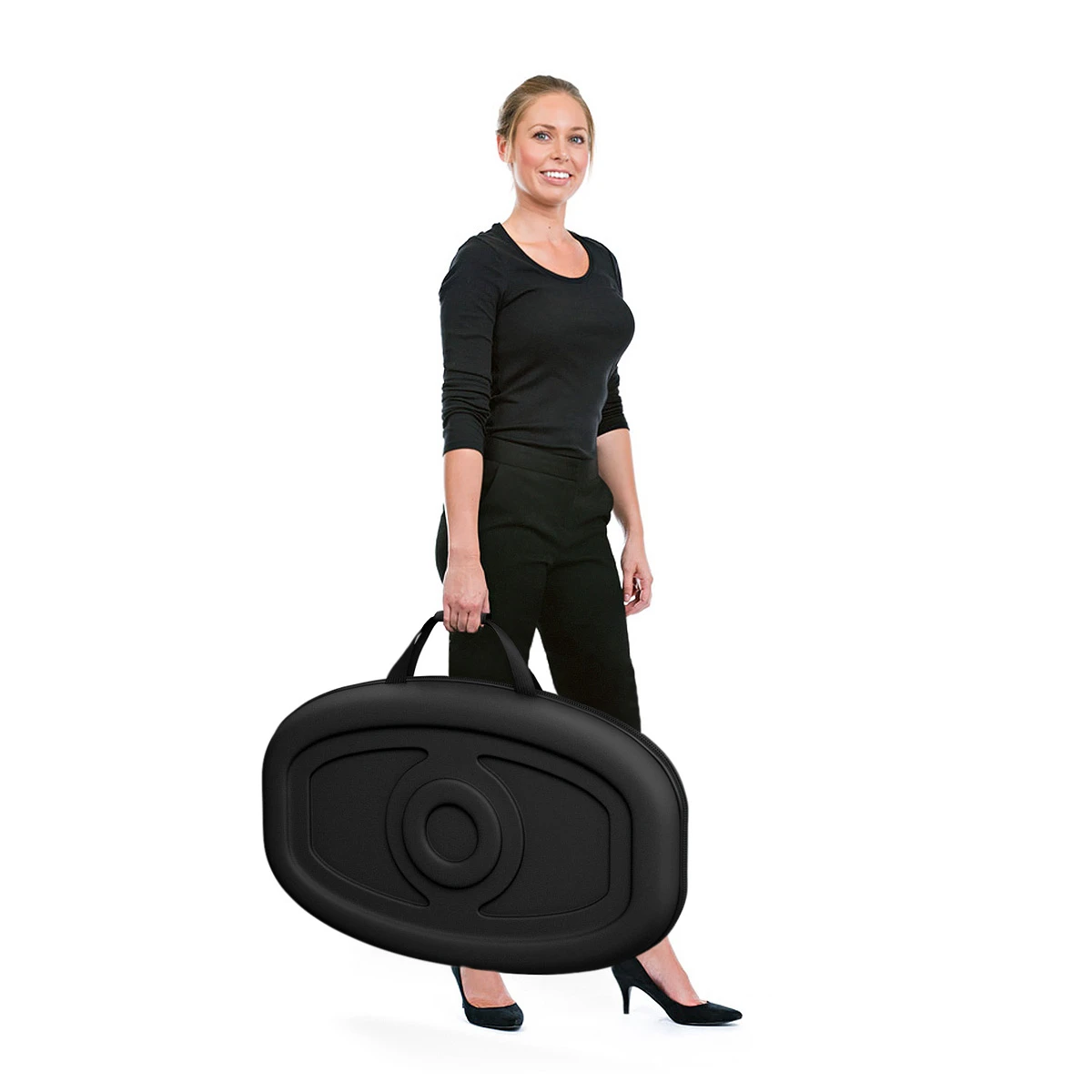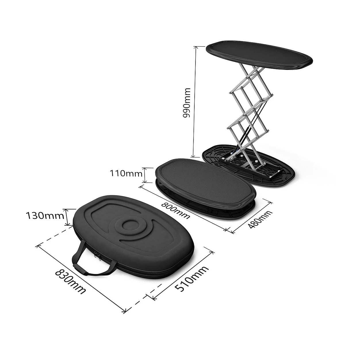 Utilising an internal concertina support frame and pneumatic gas strut mechanism, the SURGE® Exhibition Counter automatically transforms from inside the supplied carrying case, to a fully assembled promotional counter – almost instantly. Automatic Pop-Up Counter includes custom printed stretch fabric counter graphics that are pre-installed and a black square table top.