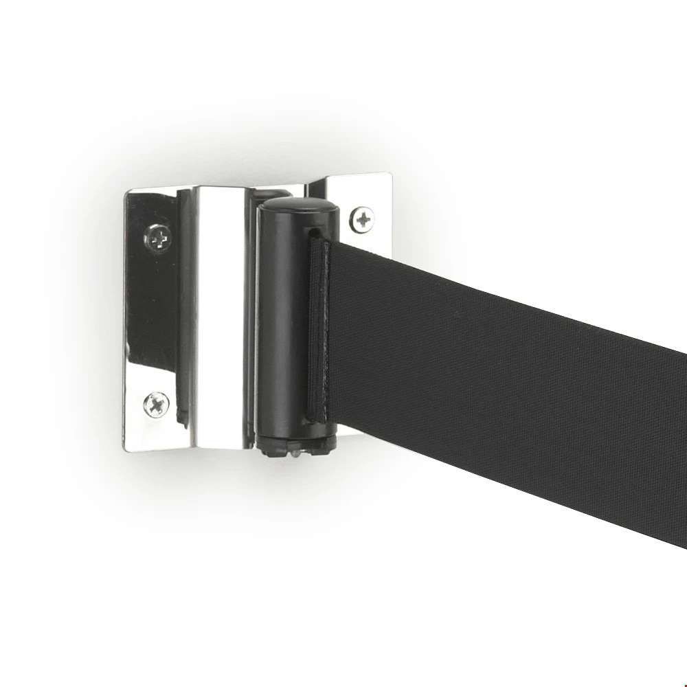 This wall-mounted belt barrier system includes a retractable 2m-long black webbing belt which can be extended and clipped to form queue barriers or waiting lines for supermarkets, bars, restaurants, retail premises, transport locations and any other places where social distancing measures mean that queueing systems are in place.